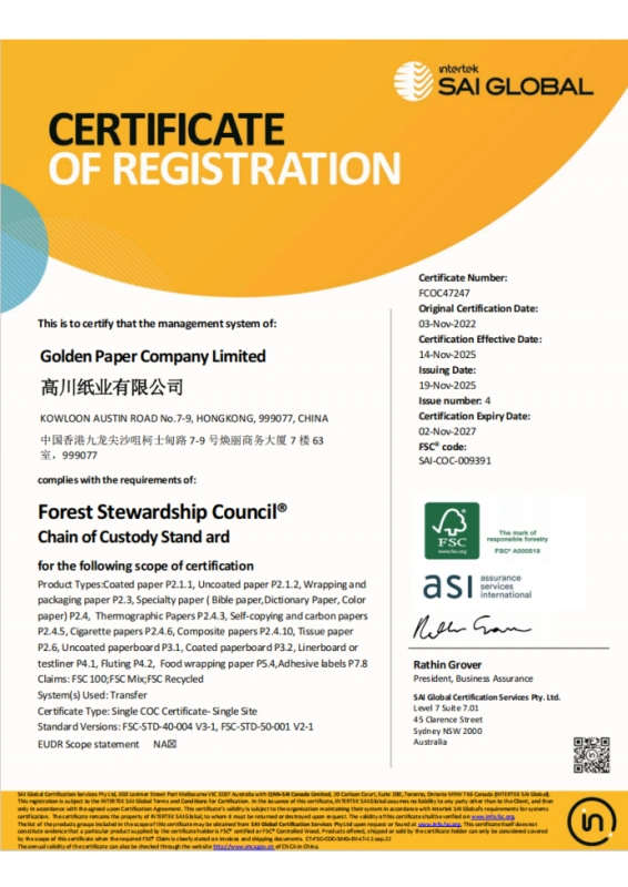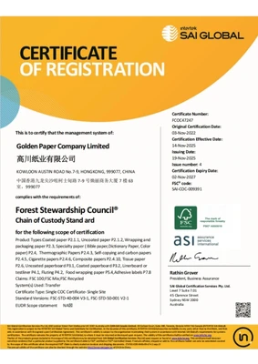 Golden Paper Company Limited is a corporation established in China for more than 20 years. As one of leading paper and paperboard suppliers, the business of Golden Paper covers pulp, paper and board product with committing to paper production, marketing and exporting.